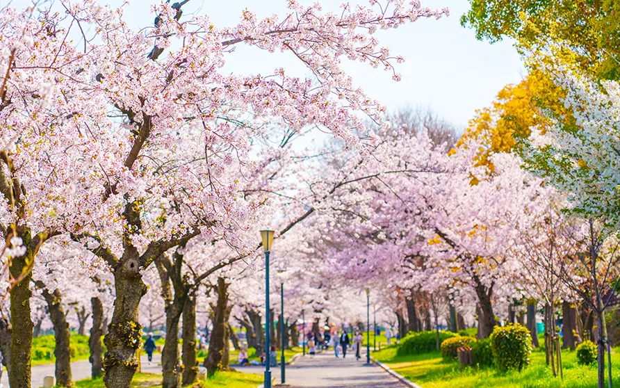 大川沿いを彩る春の名所、毛馬桜之宮公園。