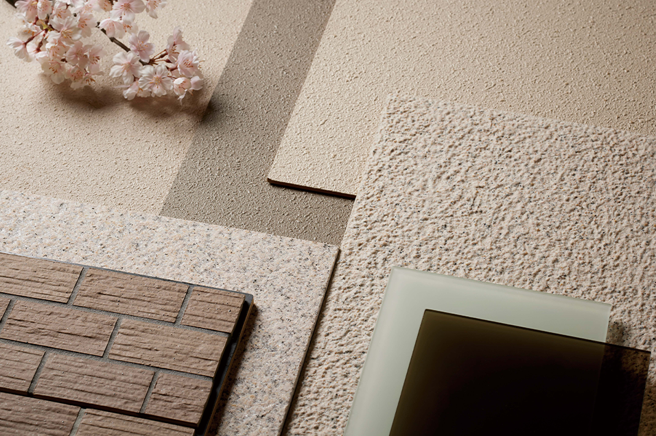 アースカラーを基調に多彩な素材を組み合わせることで、街並みに融け込みながらも存在感を放つ建築デザインに。空へと向かう垂直方向のマリオンと、随所に施した水平方向のボーダーが凛々しく、洗練された佇まいを演出します。バルコニーにはブラウンガラスを採用し、上品で落ち着きのある印象をもたらします。